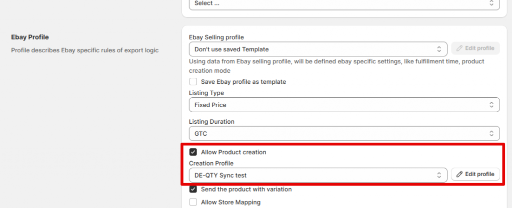 Learn more about the Creation Profile configuration in the eBay export guide