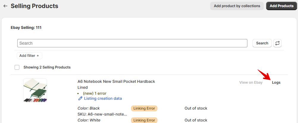 See the results in the Selling Lists tab. If you created some Selling Lists beforehand, the items will remain there, but the status will change to “Linked”. The Linked status indicates that the connection is established, and Shopify stock and prices will be synced to eBay.