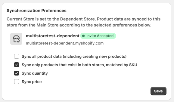 Salestio Multi-Store Sync is a helpful tool for maintainers of multiple Shopify stores. The app updates prices and quantities as they change over time, and syncs product information across the stores. In this article, we will explore the possible options and customizations when setting up the Dependent store side of the app.