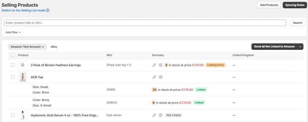 Previously, connecting store products to active marketplace listings involved multiple steps on the Inventory page. After the update, you can use the “Send to eBay/Etsy” action in the Selling List. Salestio will automatically detect if there is a marketplace listing with the same SKU and link the product instead of creating a new one. We hope that this change will make the initial setup faster and easier.