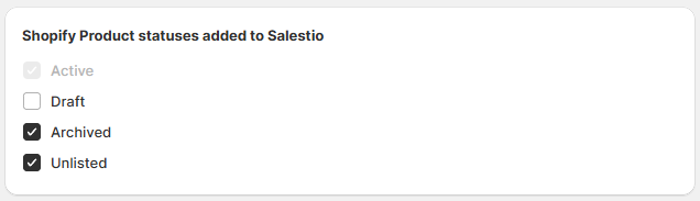 Salestio now supports the recently introduced Unlisted status in Shopify. It hides products from store search and collections, all sales channels, internet searches and Shopify Catalog—while still allowing access via a direct URL.
