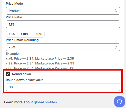 Smart Rounding settings just got more precision to help make your prices look exactly as you want. After the new update, you can set the cutoff point for rounding down manually. Adjust the settings in the Global Profile.