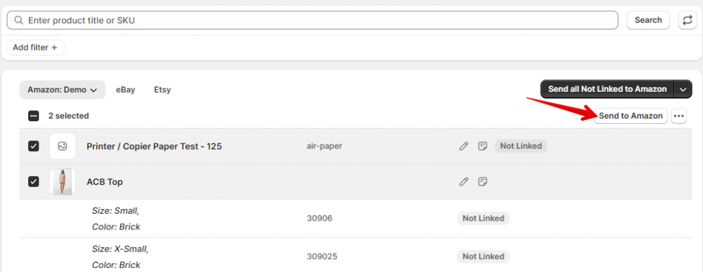 Consultez l'autre façon d'envoyer et de gérer les produits via les listes de vente, ce qui permet de trier les éléments en différents groupes. Consultez le guide complet ici : Envoyer des produits Shopify sur Amazon